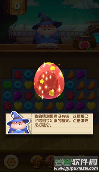 5、之前的猜测是对的,这颗蛋已经吸收了充足的糖果;点击蛋壳就能将它打破。