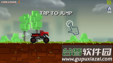 3、进入关卡后,通过点击屏幕控制车辆跳跃前进;