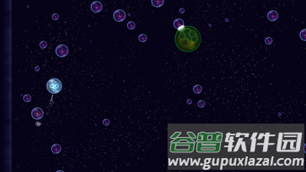 5、气泡是游戏中的主要变量,兼具移动与推开附近星体的功能;接近危险星体时,可结合惯性用推力将其推远。