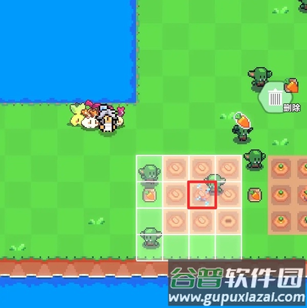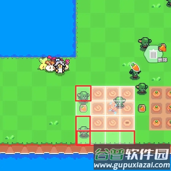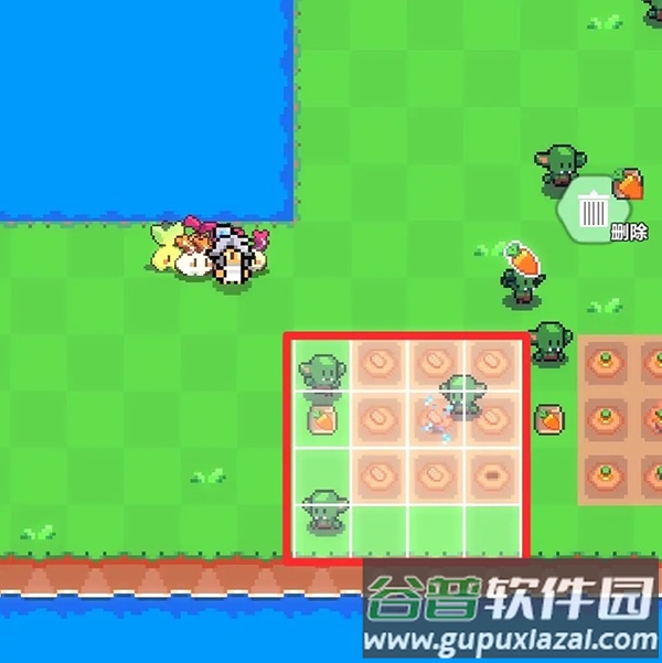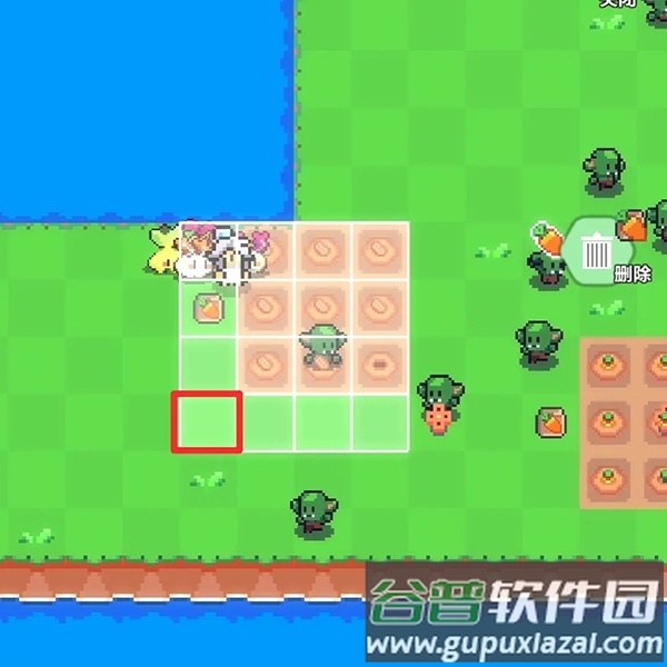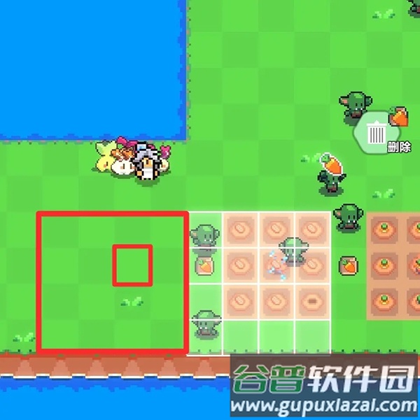 7、首先放置农田,确保图中红框区域位于之前提到的可放置洒水器范围内(位置不必与图示完全一致)。