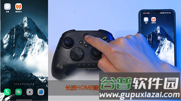 1、长按手柄上的HOME键,启动手柄电源。