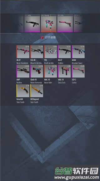 案件选择——在这里可以挑选想要开启的普通武器箱或纪念品箱。点击任意箱子即可免费开启。如果你感觉运气十足,还能尝试开启特别定制的高级箱子。