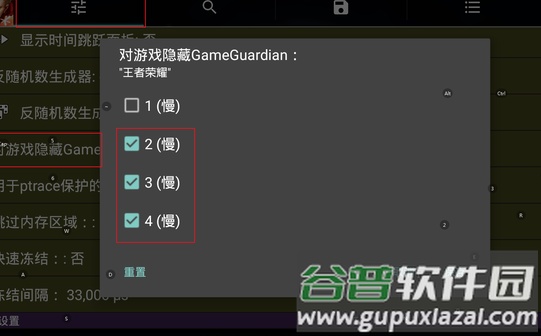 第四步:在GG修改器中开启对游戏的隐藏选项,通常选择2.3.4模式;