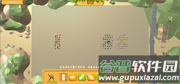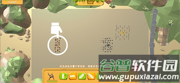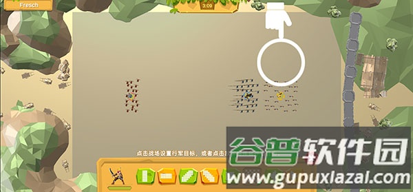 2、在战场中点击可设定行军目标,并能切换多种不同阵型;