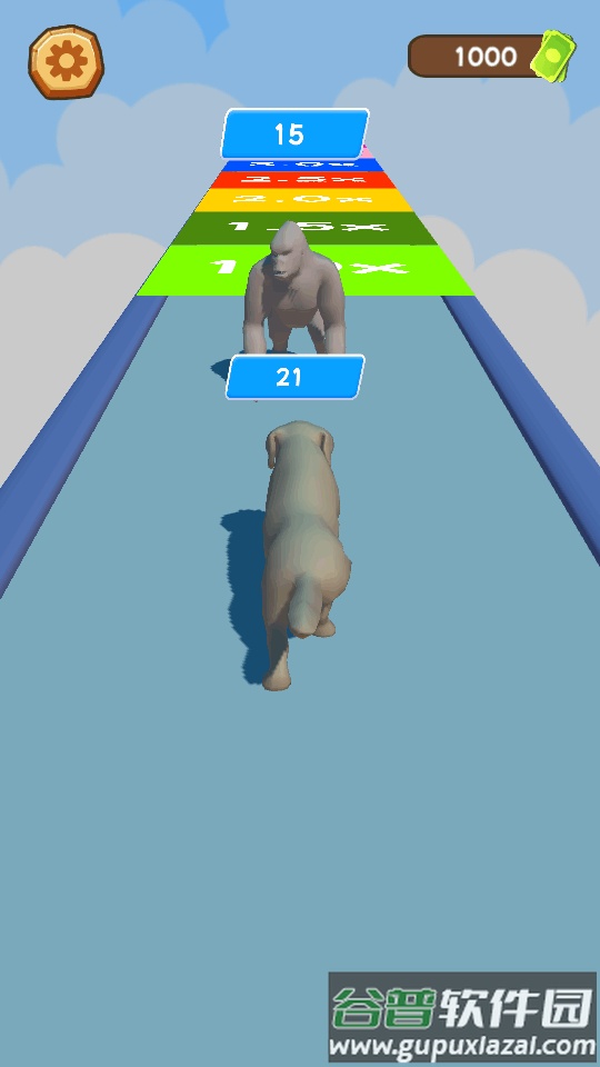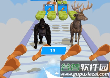 1、在跑酷过程中,拖动屏幕控制动物移动,吃掉肉类或卷心菜可以提升武力值,即角色上方的数字显示;