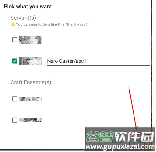 对于从者图像,可以使用“文件夹/名称”的格式,例如输入“Nero/asc1”;这将在FGA/support/servant/Nero目录下生成名为asc1.png的文件。
