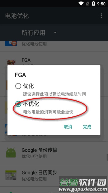 4、根据提示完成电池优化设置,避免软件在后台被系统强制休眠。