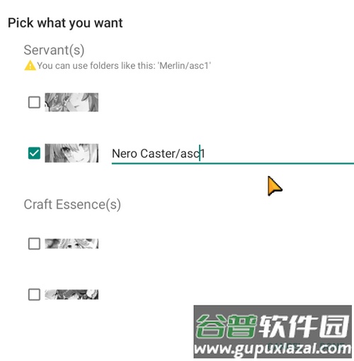 通过文件夹进行分类,便于在软件设置中一次性匹配同一从者的不同灵基再临阶段与装扮。
