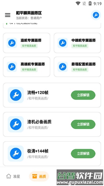 渣机专属画质;中端机专属画质;高端机专属画质;最强配置机画质;流畅+120帧。