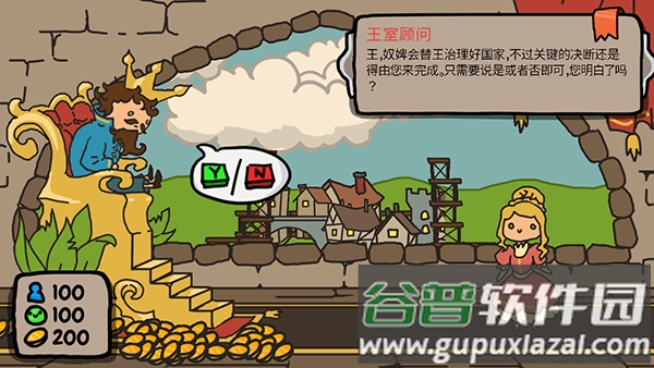1、启动游戏后,你可以选择扮演国王或王后,此处以选择国王为例,之后你只需通过简单的“是”或“否”来下达命令。