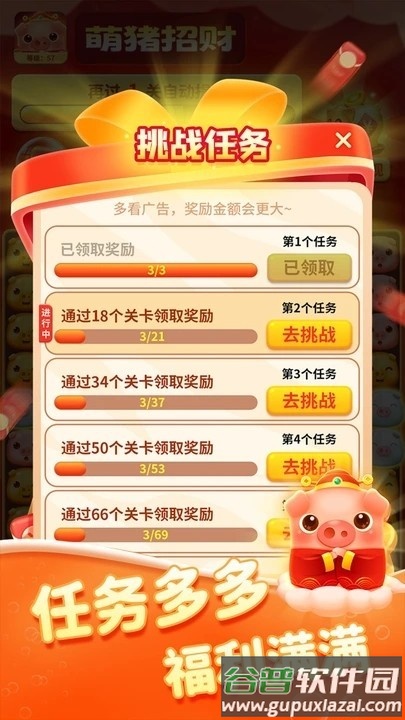 1. 核心目标是消除屏幕上颜色相同的红包元素,以此帮助小猪收集财富;