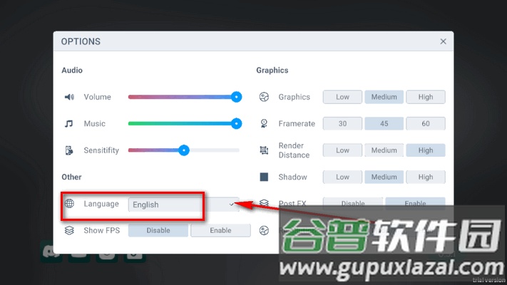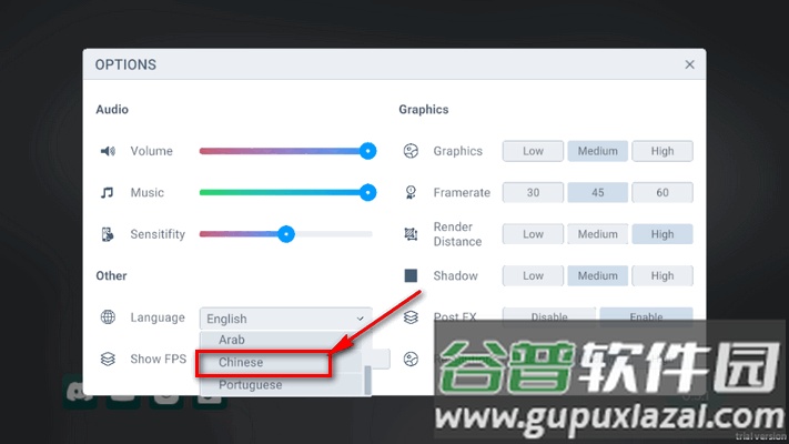 3、找到语言选项,将English向下滑动,切换为Chinese即可完成设置;