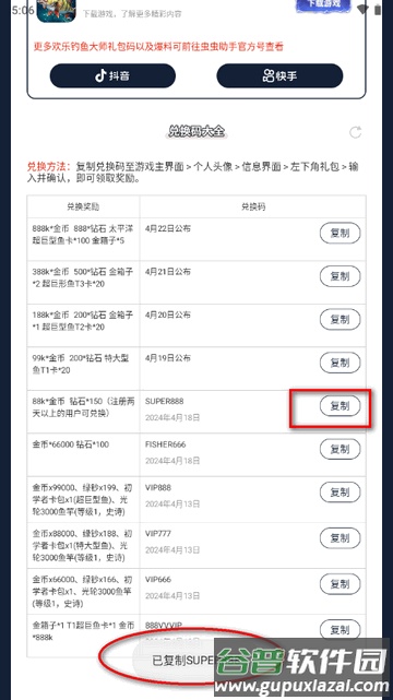软件提示复制成功后,进入游戏内指定兑换页面粘贴使用。