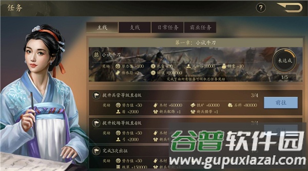 完成主线及支线任务是获取初期资源与铜钱的主要途径。推进至主线第二章即可开启后续内容;游戏任务系统引导清晰,跟随主线步骤能有效明确发展节奏。