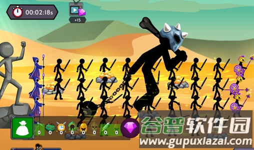 在继承经典火柴人对抗玩法的基础上,引入了新机制与图形效果;你需要建造矿工单位来采集金币与宝石,用以招募各类兵种:包括矿工、剑士、弓箭手、重装步兵、巫师、民兵、投石机与防御塔等。