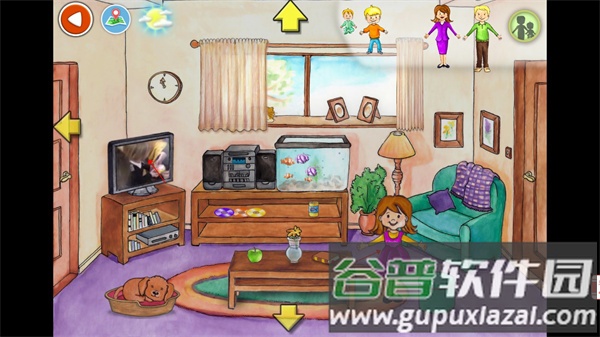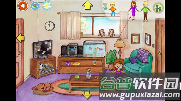 4、使用方向箭头切换不同场景;例如点击左箭头可前往客厅区域。