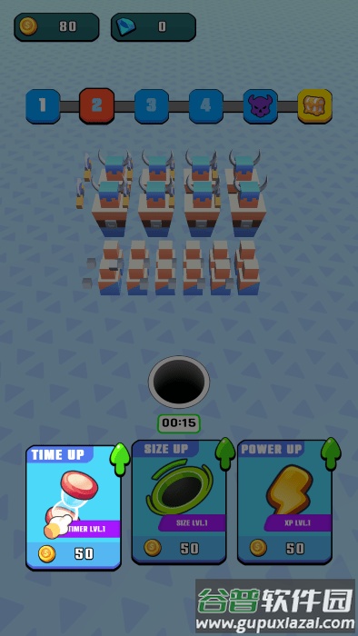 玩家拖动屏幕即可指挥黑洞移动,不断吸收场景中的方块战士等各种物体;