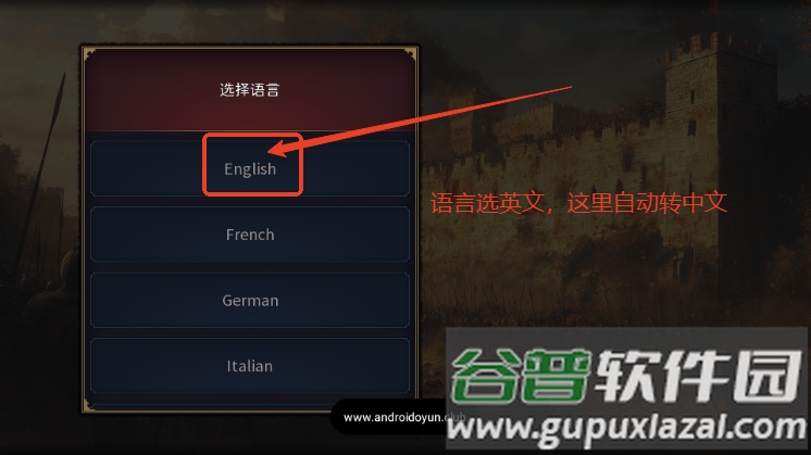 5、此版本具备自动汉化功能,选择英语后游戏内容即会显示为中文,选择其他语言则可能无法生效。