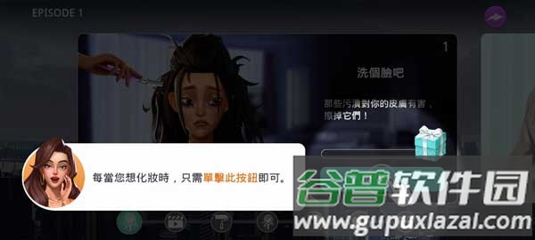 3、请注意,化妆或打扫等操作均需消耗游戏货币,务必确保资金充足;开始化妆第一步,使用粉饼清除面部泪痕。