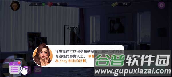 1、进入游戏后,点击左上角的地球图标,切换为“繁体中文”即可开始;首先点击左下菜单键,查看为女主角设定的各项计划。