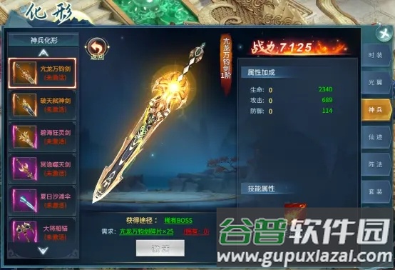 后续的神兵、仙迹、阵法等化形玩法机制类似。