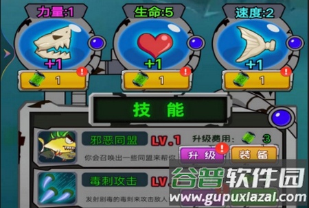1、体积增长之外,进化还能赋予加速、防御强化、环境探测等特殊能力;