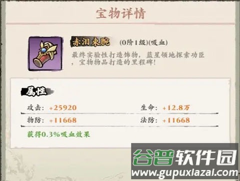 5、红色宝物:红色宝物是当前可获取的顶级宝物,基础与特定属性加成都非常高,升级收益显著;红色宝物可进一步提升品质变为金色,金色宝物最为强大,且只能由红色宝物升级而来。
