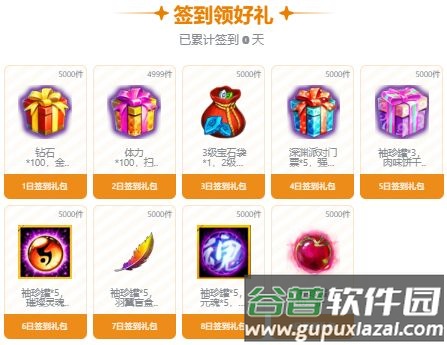 登录第2日礼包:体力*100、扫荡卷*30、地下城门票*10;