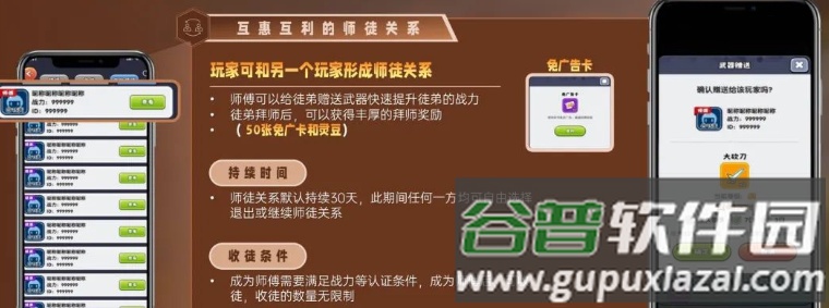 平台内置邀请机制,邀请好友参与游戏可获得灵豆反馈,形式包括广告红包、试玩奖励等;每成功邀请一位有效好友可获得100灵豆。游戏设有双重传承体系,好友间可共享战斗荣誉,胜利时可领取额外奖励。同时推出师徒系统,师徒关系持续30天,师傅资格有特定要求,但收徒数量无上限。建立师徒关系后,师傅可为徒弟提供战力加成,双方共同完成任务,师傅还可获得免广告特权与大量灵豆奖励。