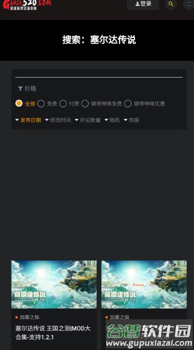 3、等待片刻,页面便会显示相关的游戏资源列表。