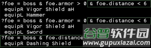 当首领护甲值大于零时,右手持盾,左手装备破甲锤。