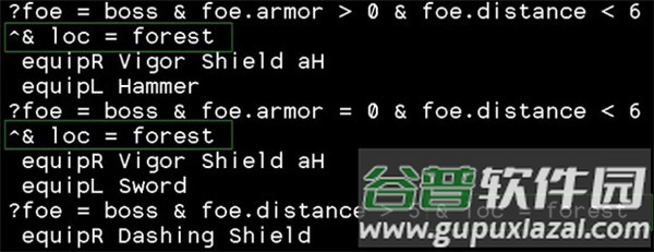 为使这段代码不影响其他关卡,需加入地图条件loc=forest;若单行过长,可用^符号连接下一行。