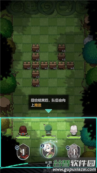 2、每回合攻击结束后,己方队伍会向前移动一格。