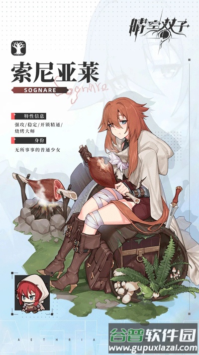 前往博瑞德营地途中偶遇的同行者,外表总是迷迷糊糊、行动慢吞吞,战斗时却展现出令人意外的身手。她时常摆弄着某个神秘物件,似乎隐藏着不为人知的来历。