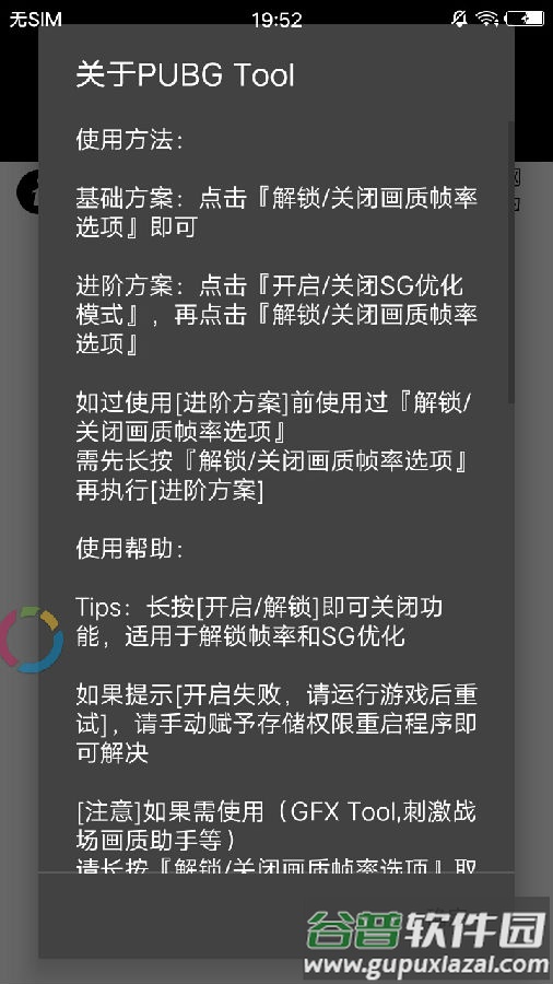 注意:如需使用GFX Tool或其他画质助手类软件,请先长按“解锁/关闭画质帧率”取消本工具的解锁状态,否则外部画质修改工具可能无法正常生效。