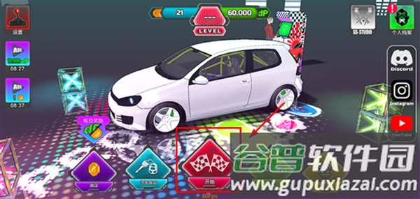 1、启动项目漂移2.0最新版本,进入游戏后点击屏幕中央的开始按钮;