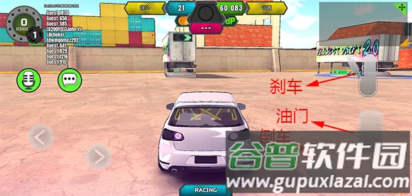 4、短暂加载后进入游戏,界面左侧控制方向,右侧设有刹车、油门与倒车按键;