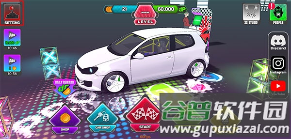1、进入项目漂移2.0游戏主界面,点击左上角的“setting”选项;