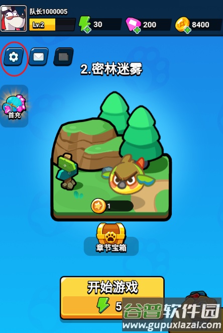 请先点击屏幕左上角的齿轮图标,进入游戏的设置界面。