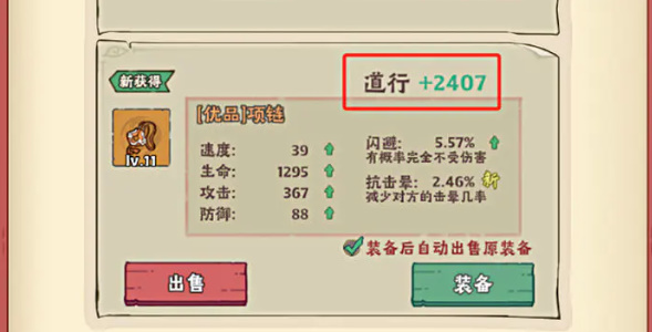 2、游戏初期跟随主线任务,摇动古井获取装备,并更换道行更高的装备;高级装备附带吸血、连击等额外属性。