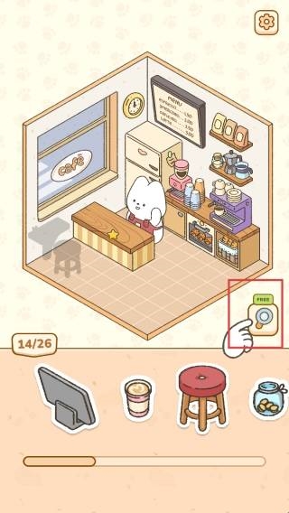 3、点击右侧free按钮,使用免费道具装扮房间。