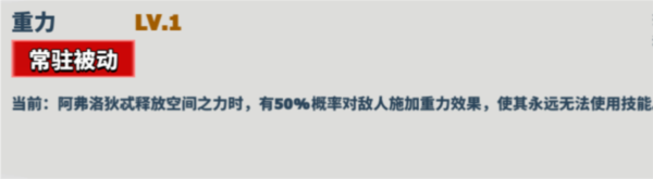 释放空间之力时,有概率对敌人施加重力效果,使其无法使用技能。