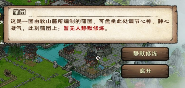 6、家园凉亭打坐:拥有1500元宝或3000元宝档位的家宅可建造凉亭,放置蒲团后每日打坐可获得1点内功修为,单一随从上限为30点;