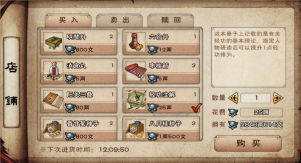 10、九幽商店:通关九幽试炼80层后,每周可在商店购买拳脚、剑术、刀法、枪棍、内功、轻功修为书,每本提供1点对应修为;