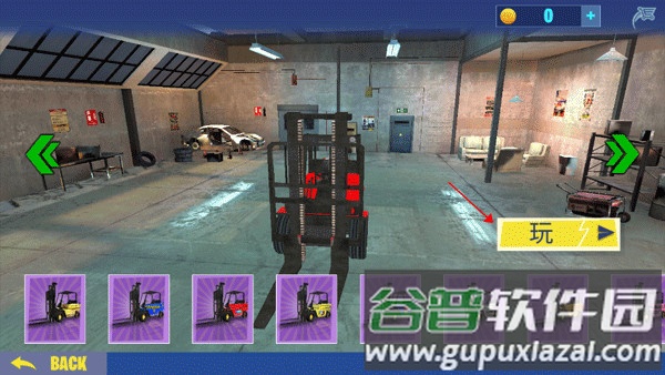 4、下方陈列着不同颜色的叉车,点击“玩”按钮即可启动游戏;