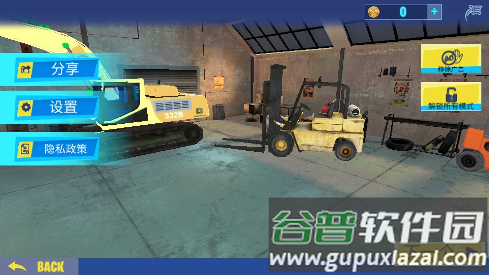 2、游戏提供多种模式,初始仅开放叉车模式,需将叉车技能提升至6级,方可解锁自动挖掘机等后续内容;