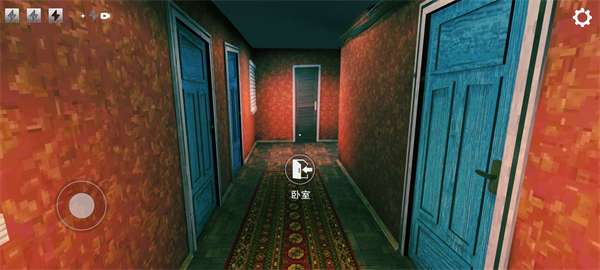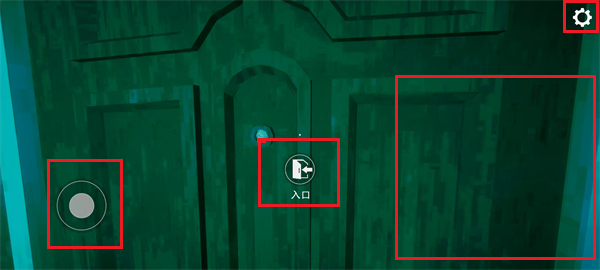 1、游戏开始后,左侧是移动摇杆,右侧滑动屏幕调整视角,点击右上角进行设置;接着点击画面中央的“入口”打开大门。