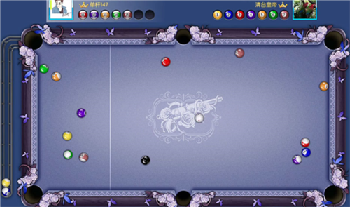 基本操作部分:瞄准时用手指在球桌任意区域上下或左右滑动;拉杆操作则是手指沿球杆平行方向向后拖动,以此调节击球力量。目标球在选定花色后确定,分为单色与双色两类。