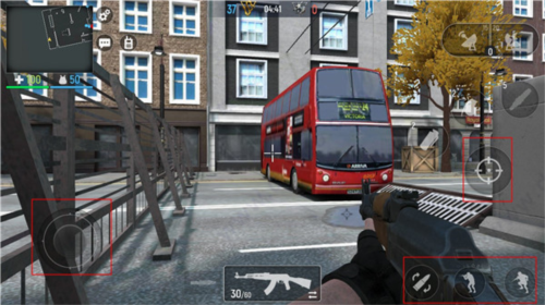 1、操作玩法介绍:左侧虚拟摇杆控制移动,右侧区域负责射击、瞄准、换弹、投掷手雷及切换武器等操作;布局符合大多数玩家习惯,在有限的对局时间内,尽可能多地击败敌对阵营以获取积分;角色阵亡后可从基地复活,建议与队友保持沟通,协同作战。