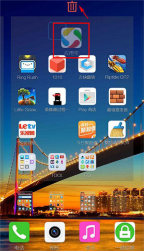 2、将其拖动到屏幕上方或下方出现的“删除”或“卸载”区域。